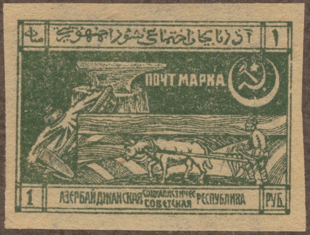 Frimärke från Aserbejdschan, 1921. Motiv av Plöjningsarbete med häst Aserbejdschan