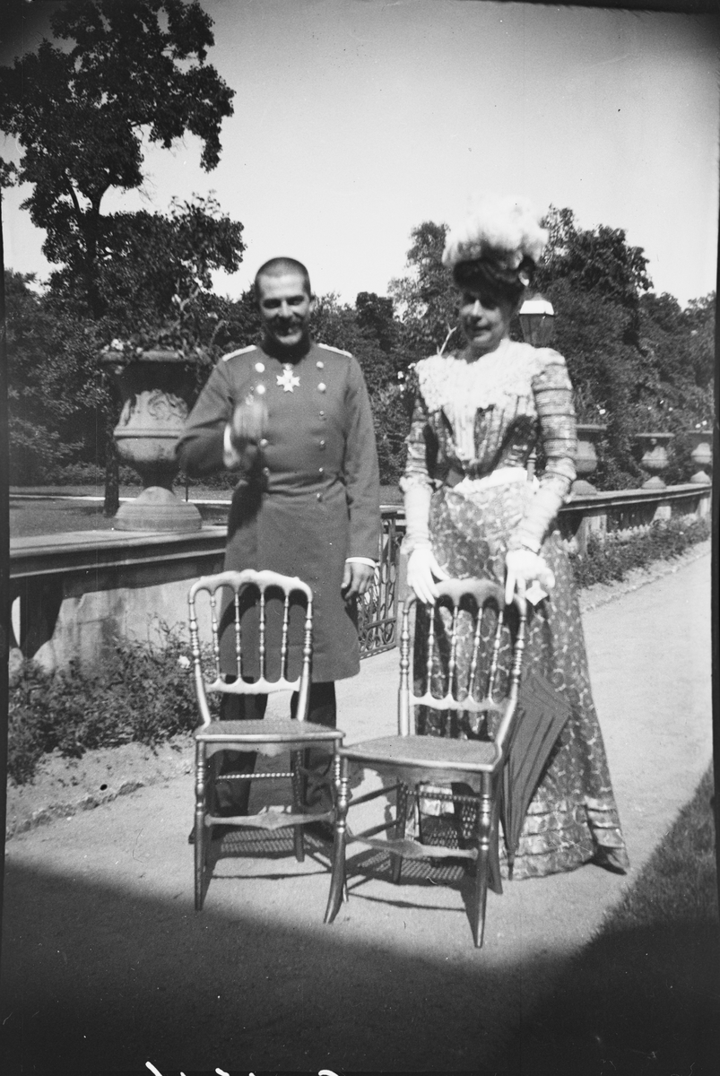 Drottning Victorias bilder. Okänd kvinna samt okänd man i uniform.