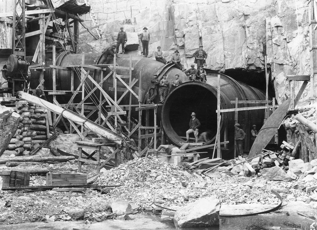 Montage av provisorisk tubledning till aggregat VI i fördelningsbassäng 2, Porjus Kraftverk.