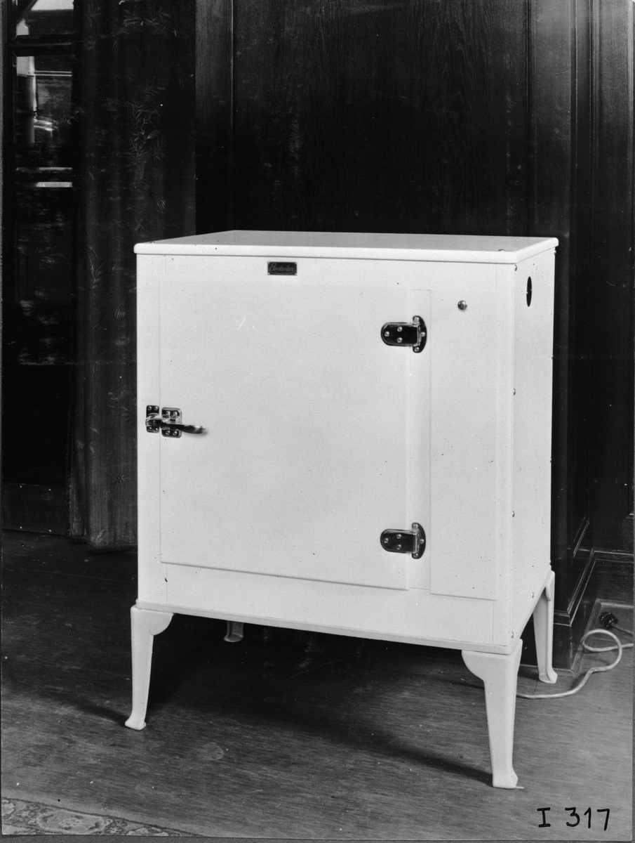 Elektrolux-Laboratoriet. Vitt D4-skåp. Elux utställningen, Stockholm.
