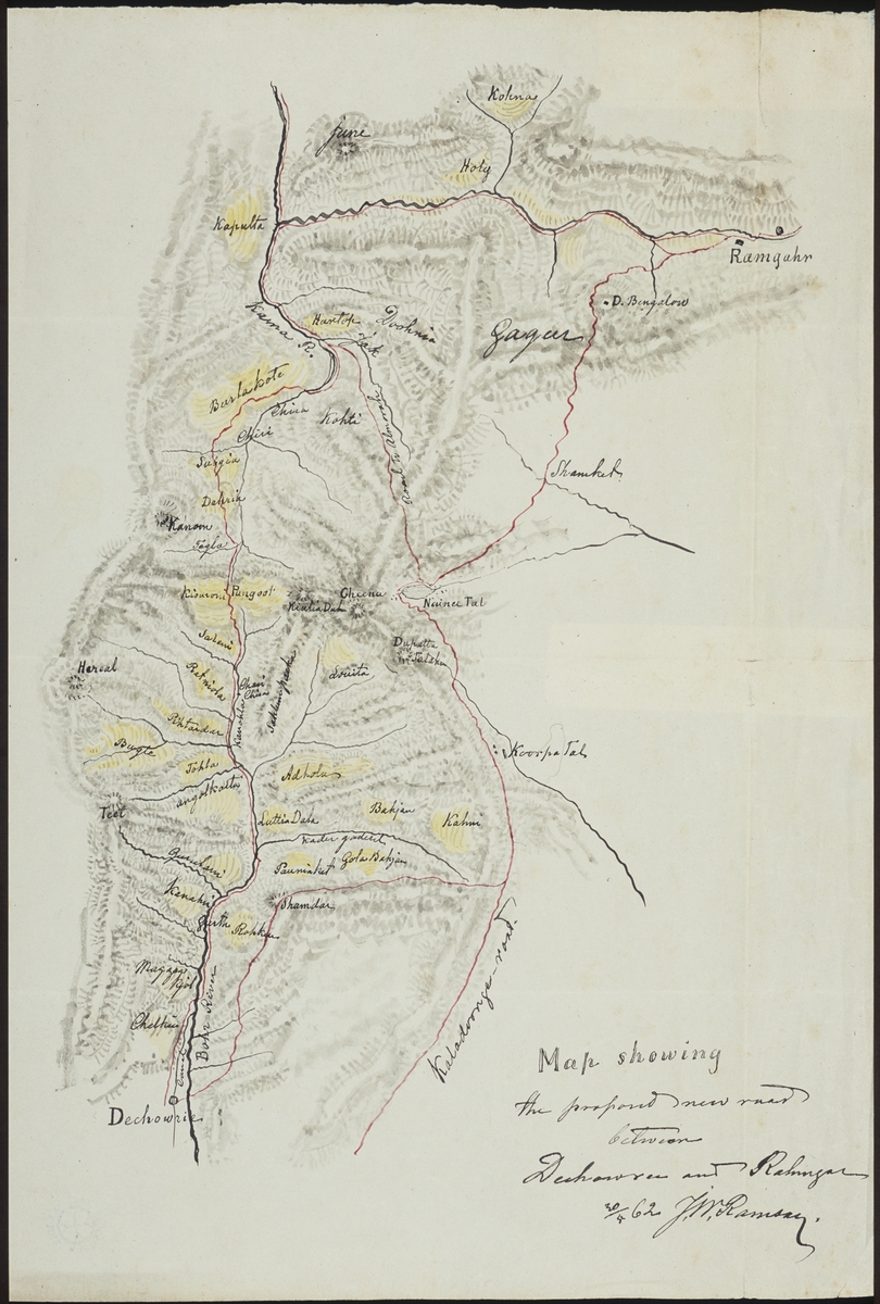 Karta över området mellan Dechowrie och Ramgahr i norra Indien,