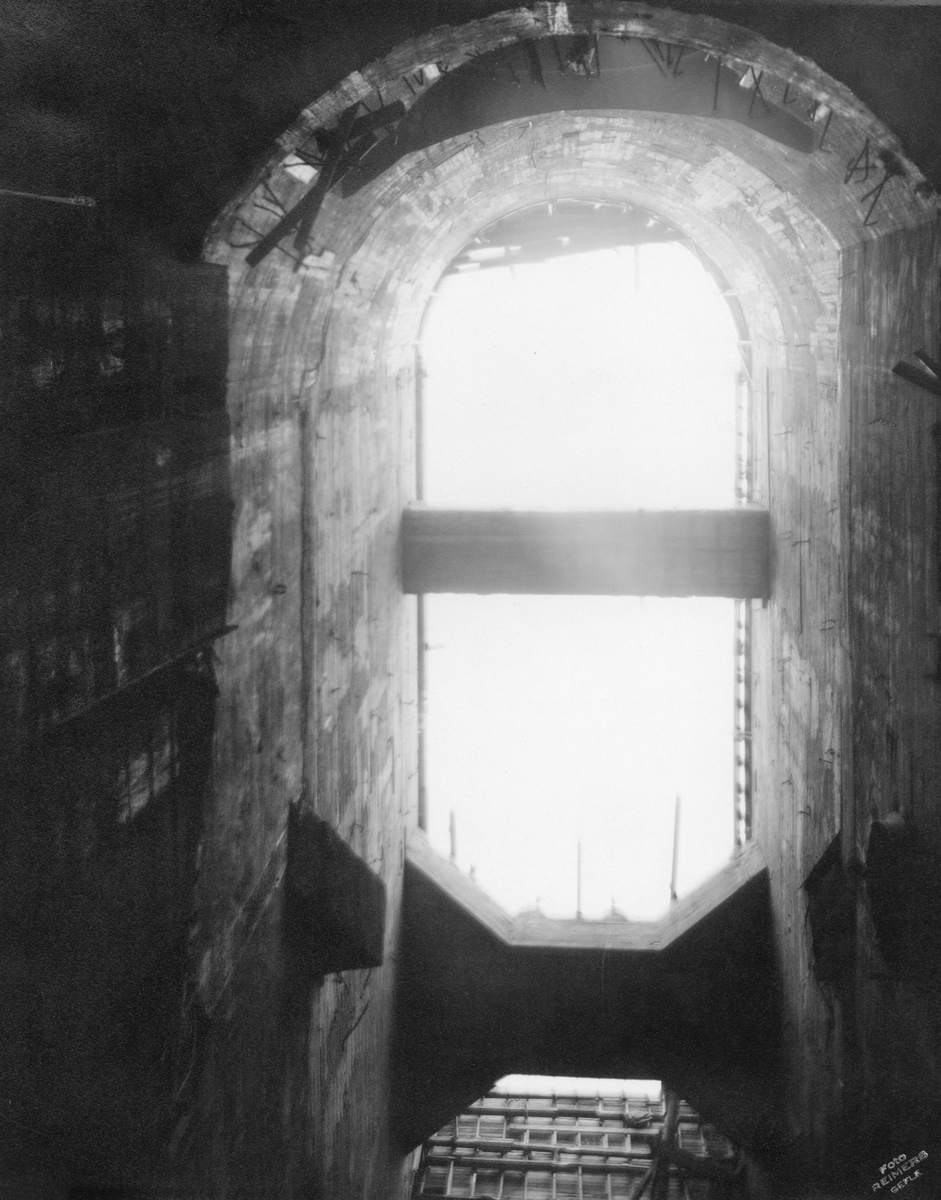 Kraftstation. Turbinkammaren no 1, sedd från botten rakt upp.