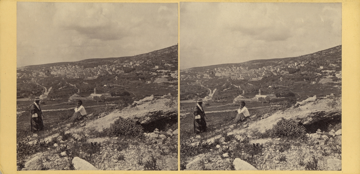 Stereobild av Nazareth sett från öster, med "The well of the Virgin".