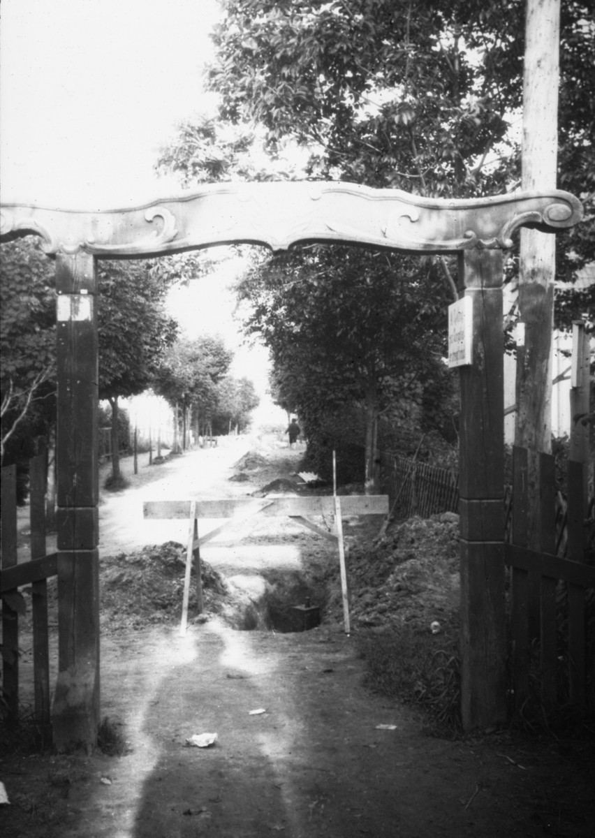 Skioptikonbild med motiv av port in till grönområde i Esberg?