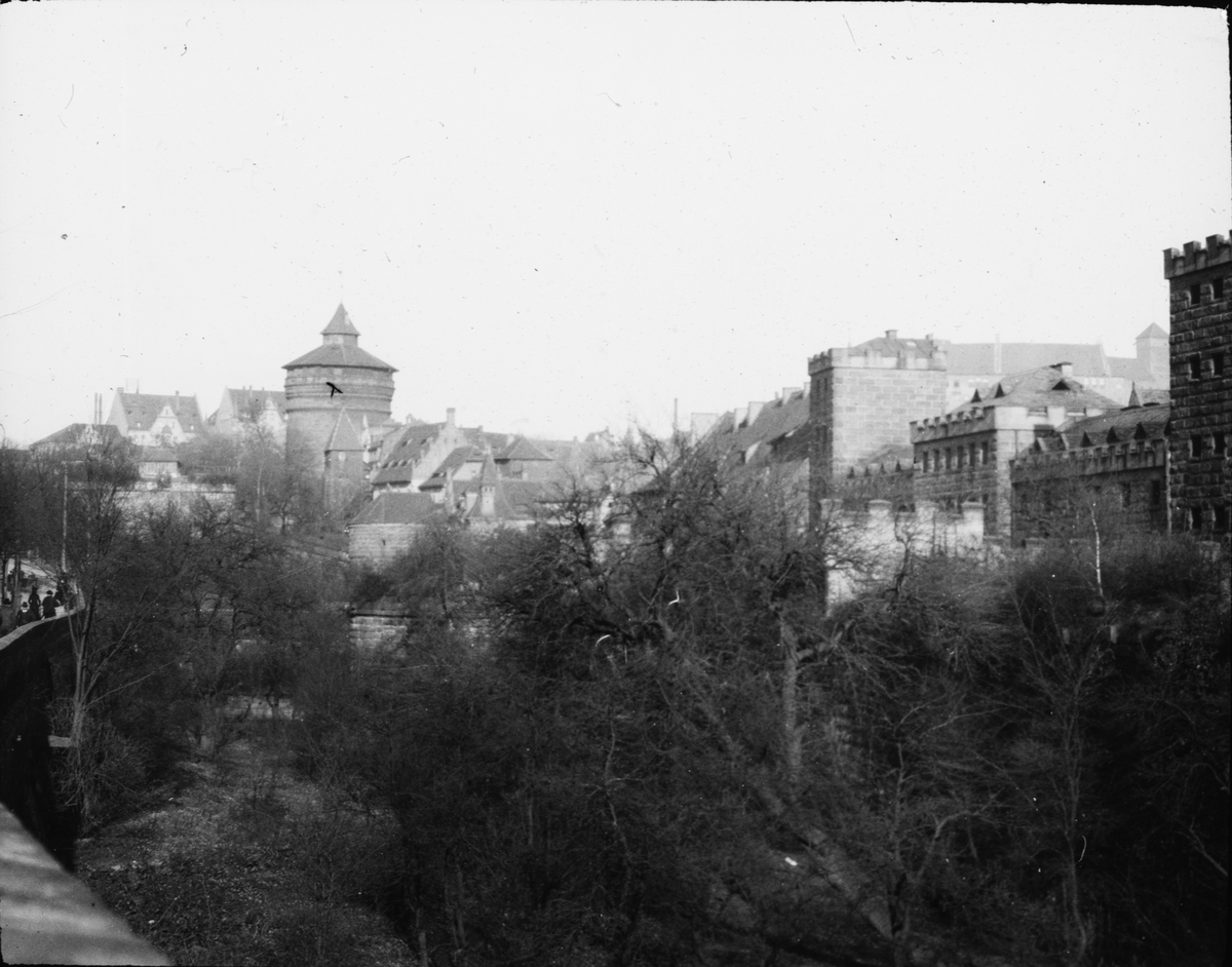 Skioptikonbild med motiv av vy över Nürnberg.