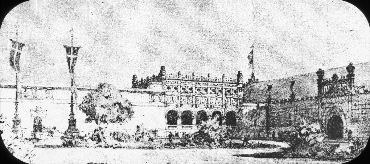 Skioptikonbild med motiv från Stockholmsutställningen 1897. Ljungberghallen.