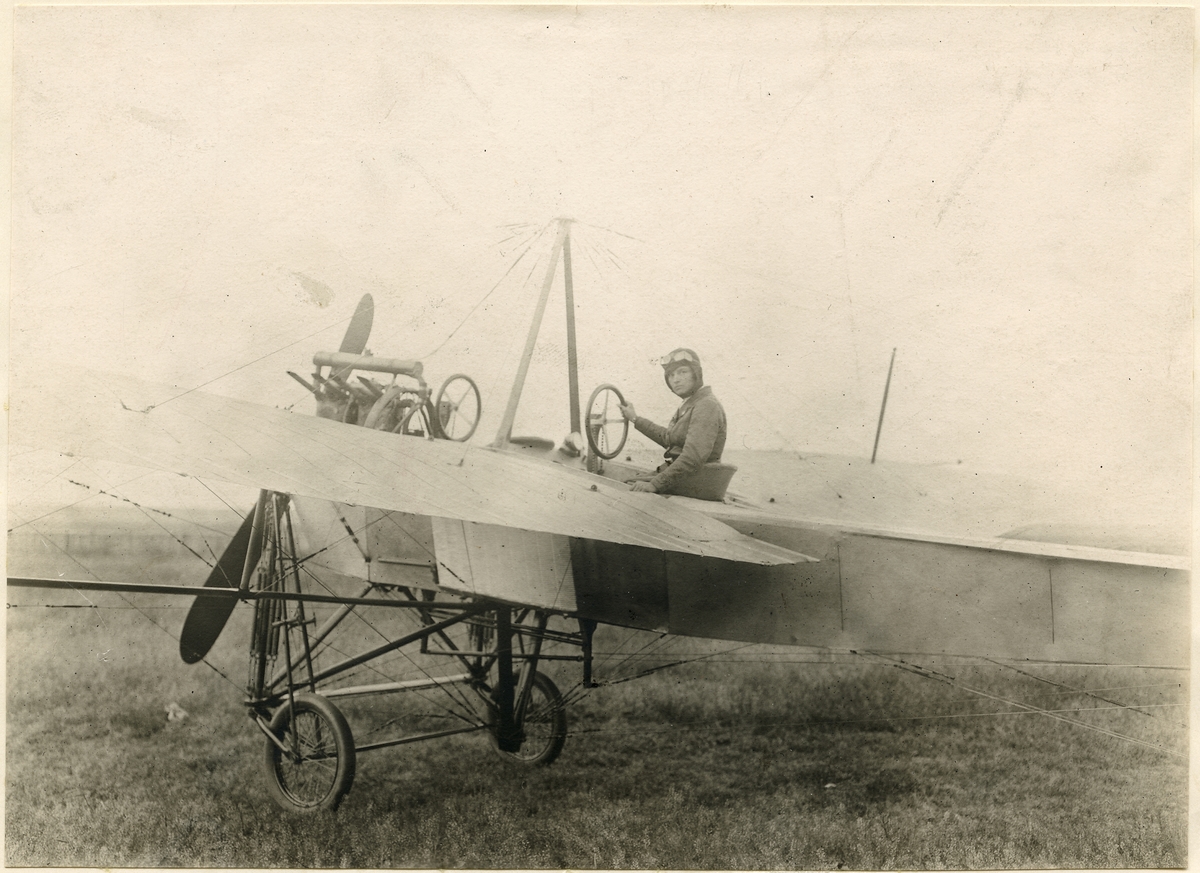 Tore Sjöholm i flygmaskin. Rumple-Taube. 1912.