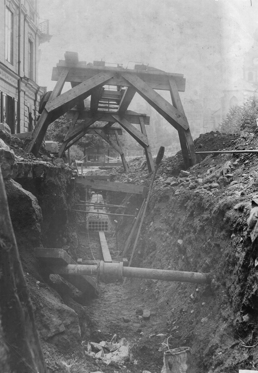 Nedläggning av underjordiska telefonledningar i Stockholm, 1891.