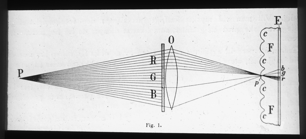 Skioptikonbild från Institutionen för fotografi vid Kungliga Tekniska Högskolan. Använd av professor Helmer Bäckström som föreläsningsmaterial. Bäckström var Sveriges första professor i fotografi vid Kungliga Tekniska Högskolan i Stockholm 1948-1958.