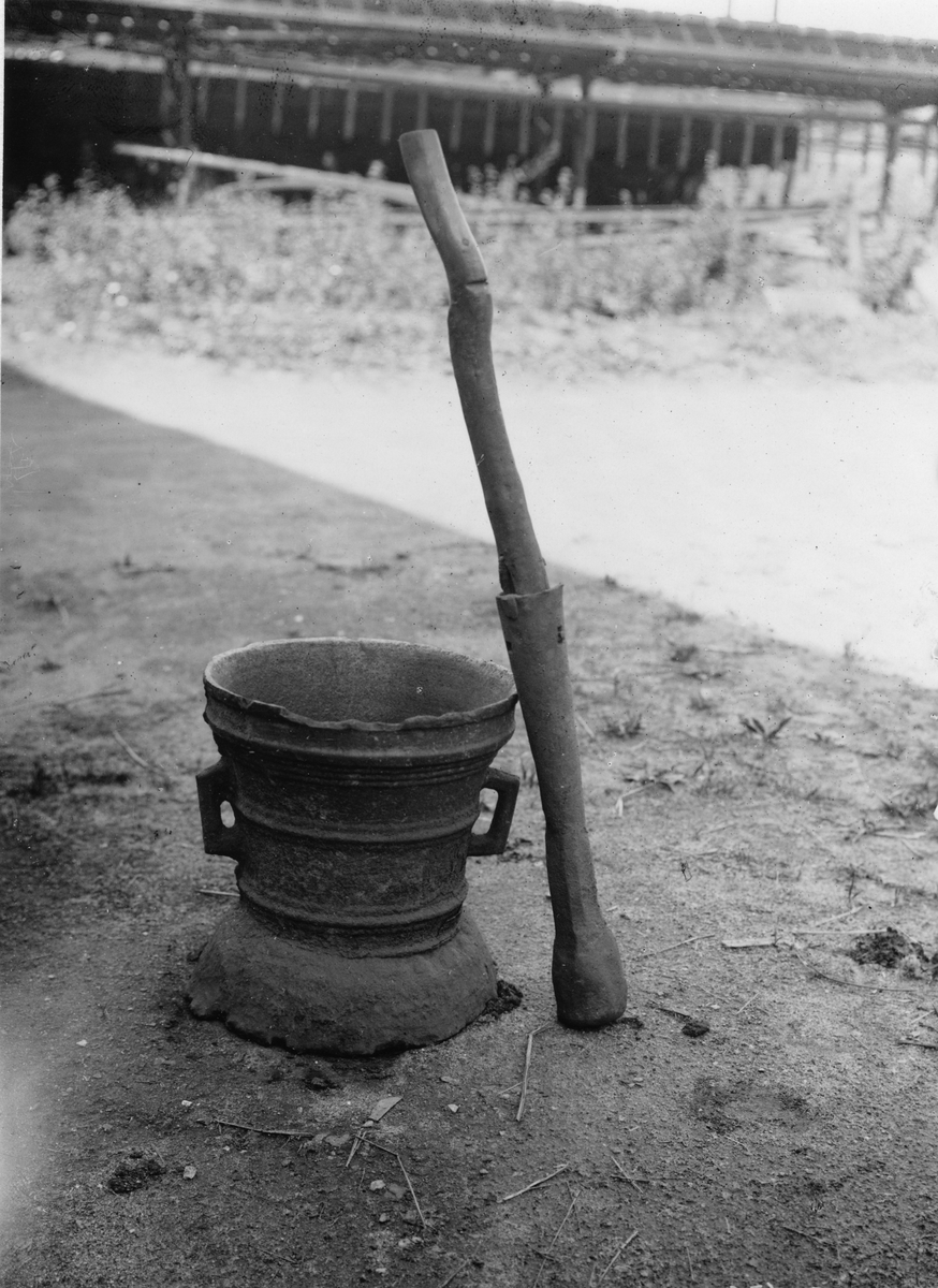 Mortel med stöt för krossning av sot vid hjutning.