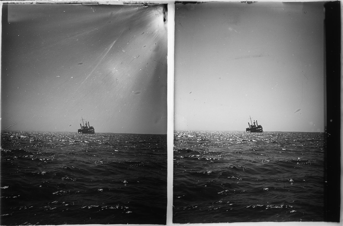 Stereonegativ, skärgårdsvy med vrak, okänd plats. Möjligen Stockholm.
