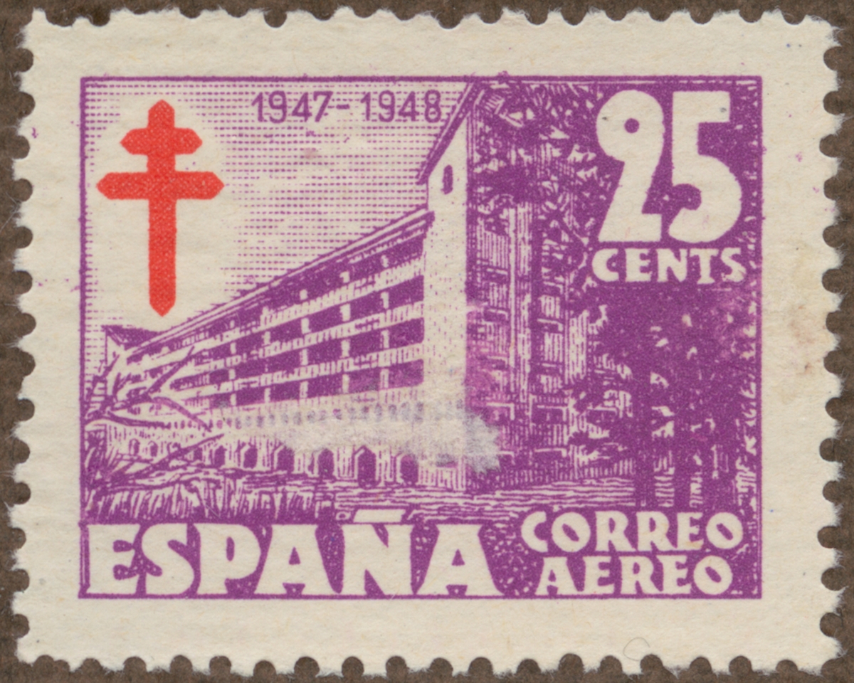 Frimärke från Spanien, 1944. Motiv av Tuberkulos- Sjukhus Spanien.
