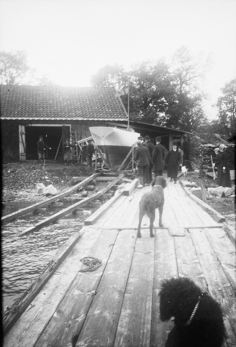Drottning Victorias bilder. Prins Gustav Adolf och greve Göran Posse byggde en segelbåt, 1904, på Tullgarn med hjälp av en båtbyggare. Här sjösättes båten "Sif".
