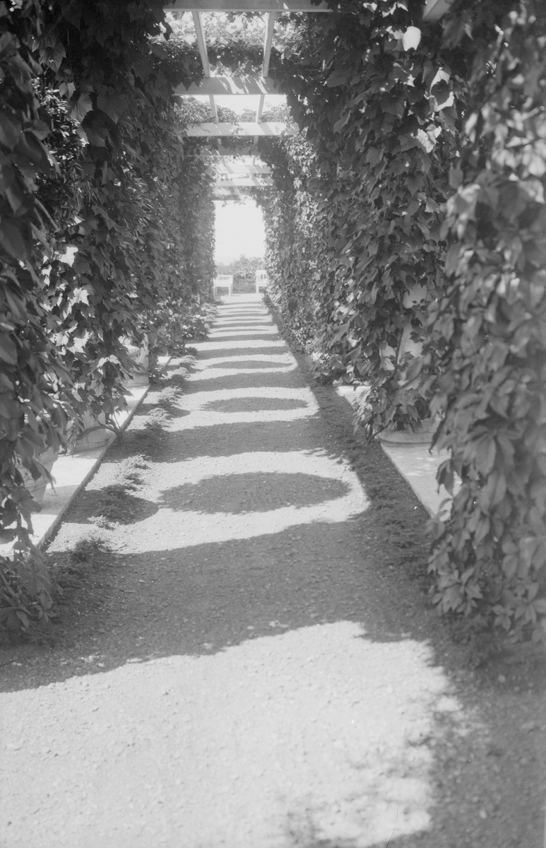 Drottning Victorias bilder. Trädgårdsgång kantade med växter. Troligen Solliden.