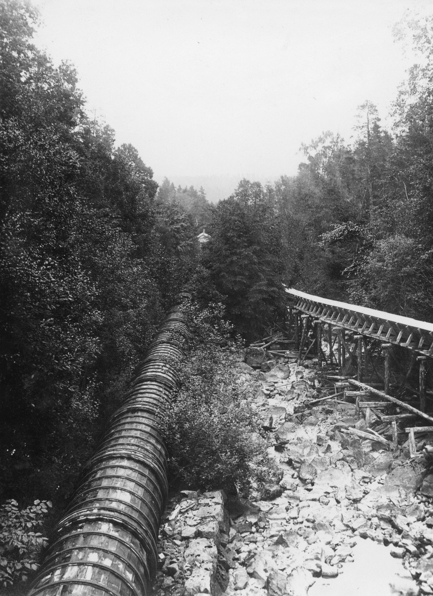 Ankarsrums kraftstation, Svarteström. Tuben från kraftstationen. Fallet är enligt Nordisk Familjebok 16,3 meter mellan Lilla och Stora Flugen.