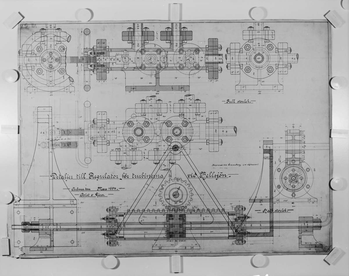 Ritning till regulator för turbinerna vid Hellsjö kraftstation.