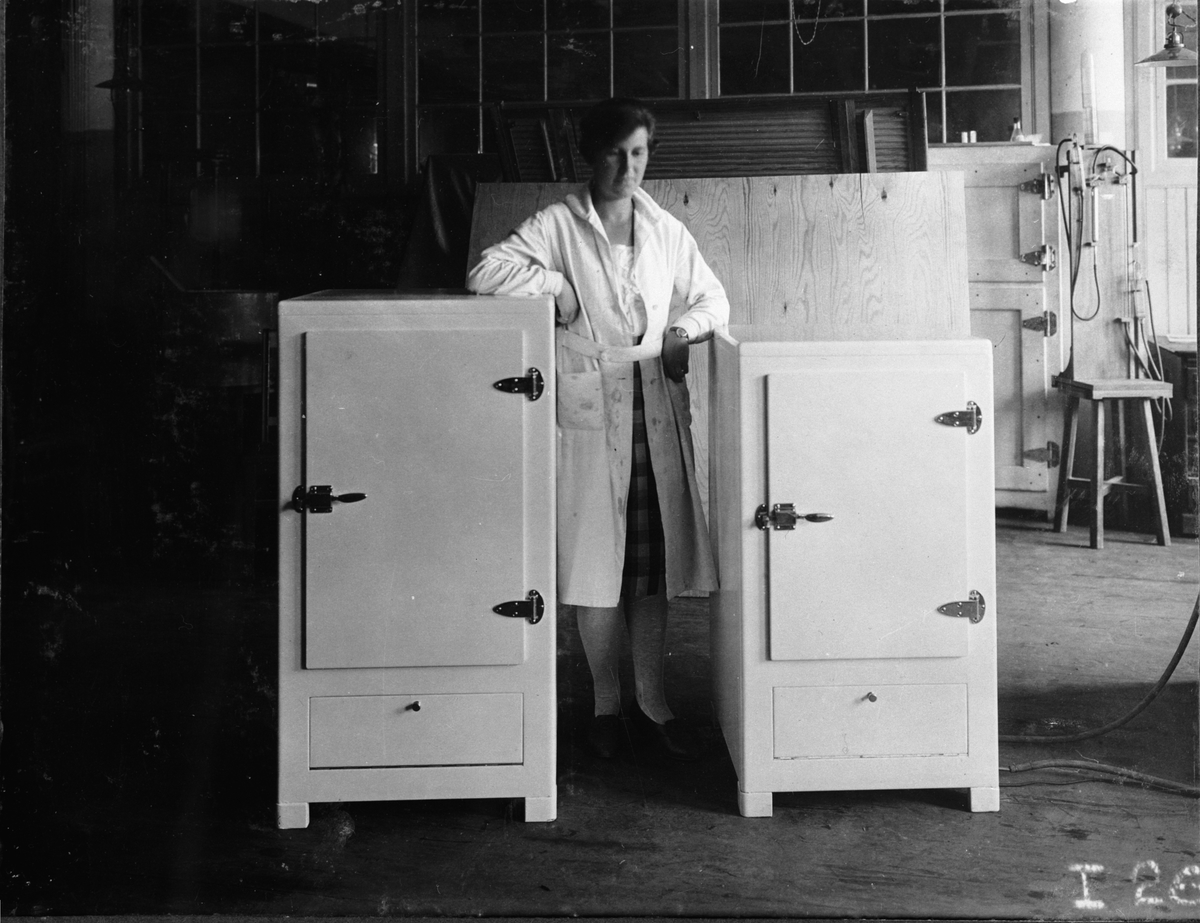Elektrolux-Laboratoriet. Baby-Unit (stora och lilla typen). På bilden finns en kvinnlig demonstratör.