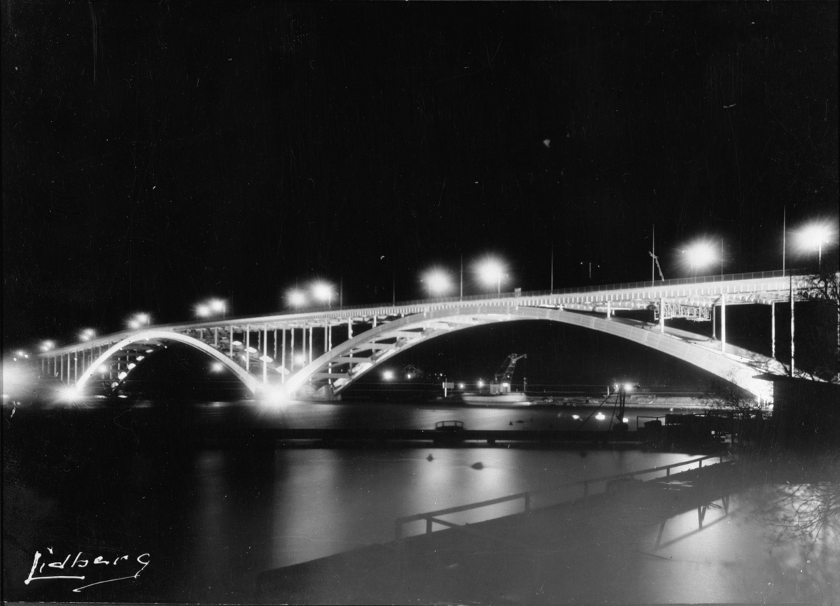 Byggherre: Byggnadsaktiebolaget Contractor, Stockholm. Västerbron nattfotograferad.