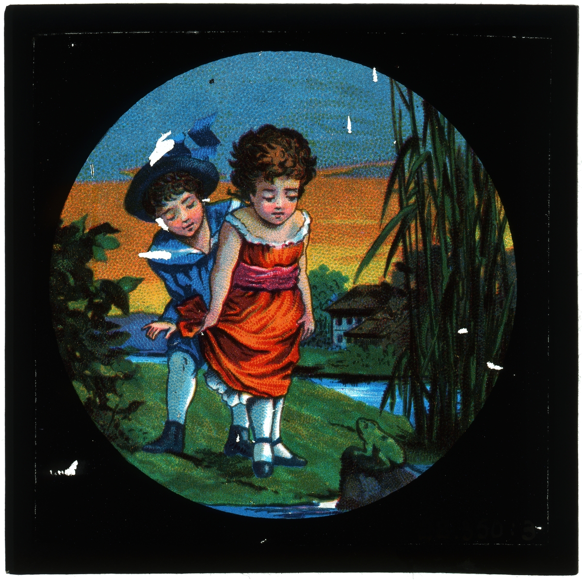 Målad bild på glas för skioptikon/laterna magica.