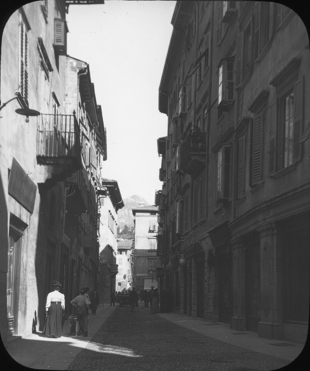 Skioptikonbild med motiv från gata i Trient.
