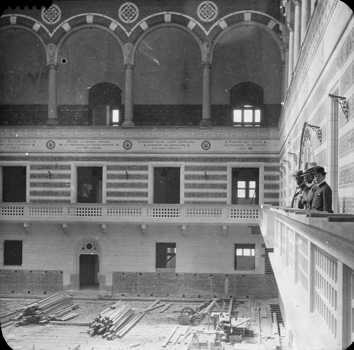 Skioptikonbild med motiv från byggandet av rådhuset i Köpenhamn.