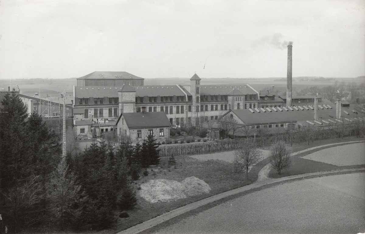 Nya Elektriska AB Bergh & Co i Svalöv, Skåne. Verkstads- och gjuteribyggnaden åt gårdssidan.