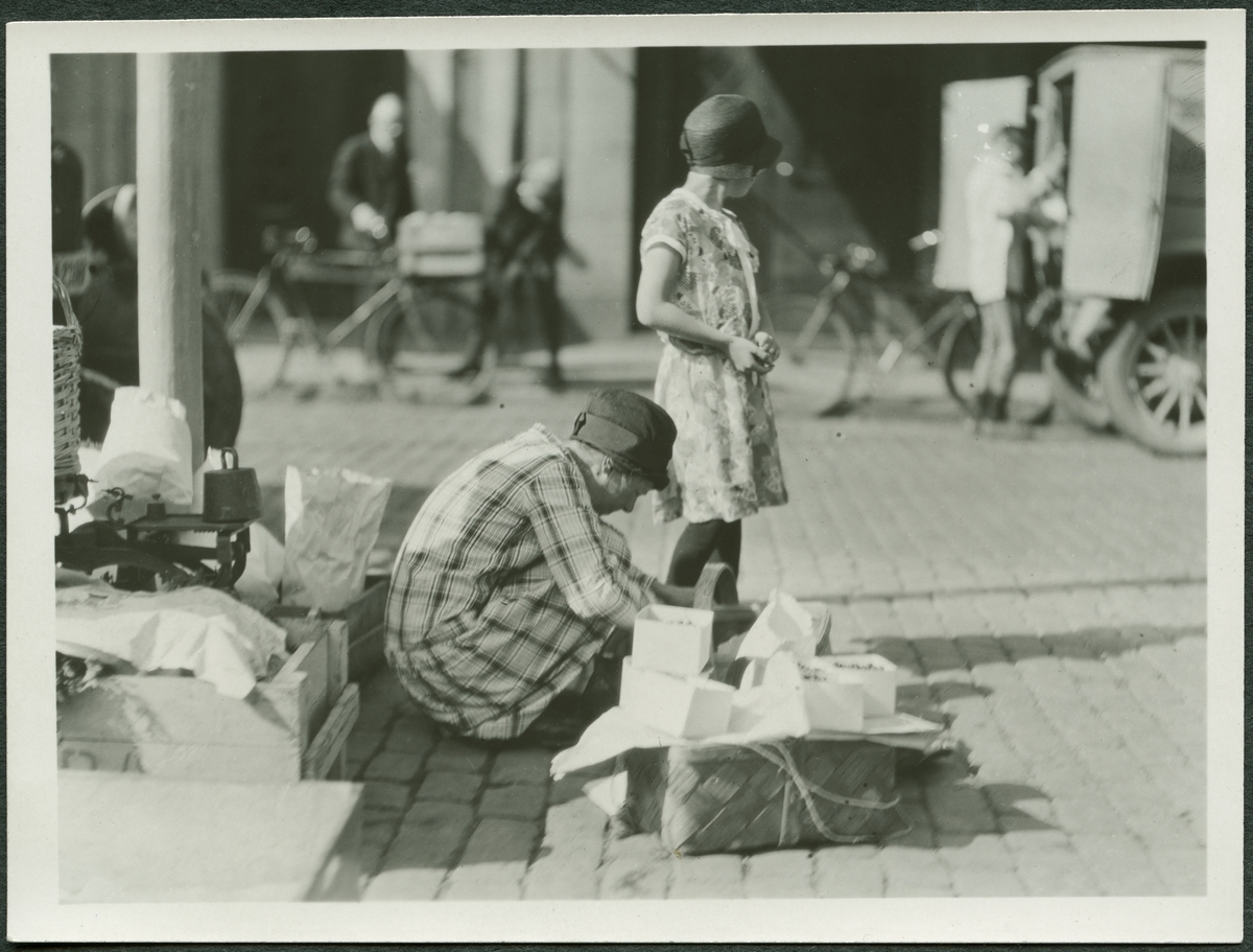 "Bärförsäljning från egnahemsträdgården. Hötorget (platsavgift 20 öre)".