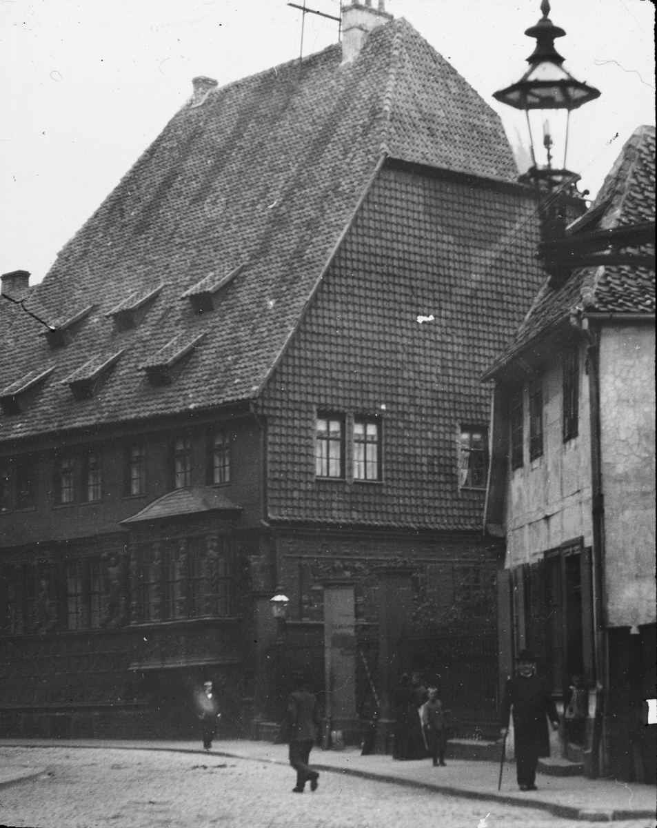 Skioptikonbild med motiv av okänt hus i Hildesheim.