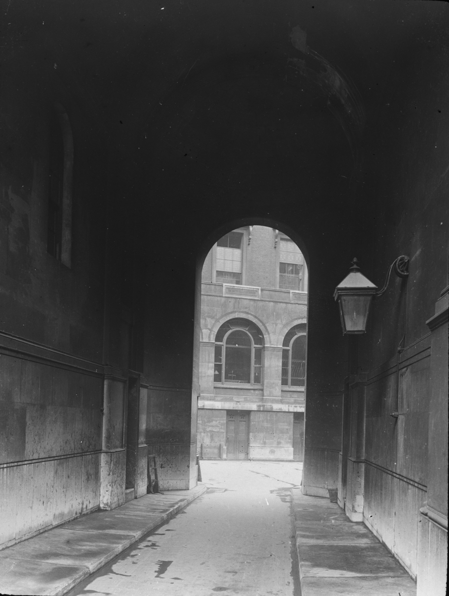 Skioptikonbild. Arkitektoniskt motiv från Bank of England, arkitekten John Soanes byggnad som revs under 1920-talet.