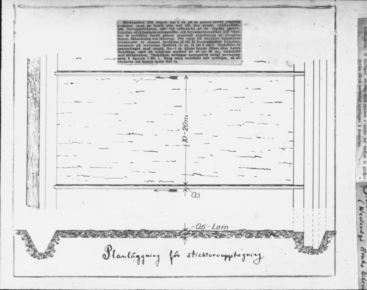 Skioptikonbild. Illustration. Planläggning för sticktorvupptagning.