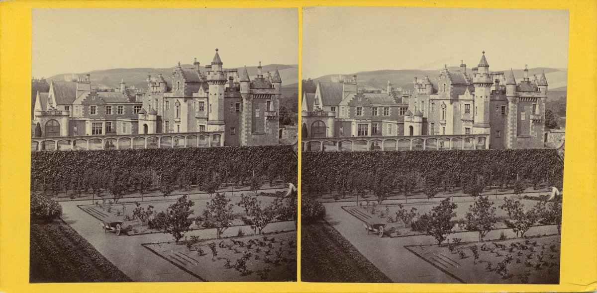 Stereobild med motiv av Abbotsford House, Skottland.