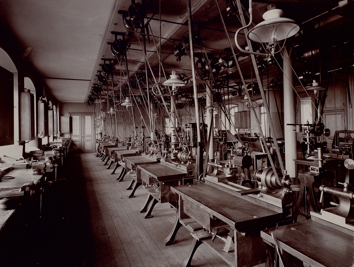 Titel: LM Ericssons verkstäder vid Thulegatan 5 i Stockholm 1901.