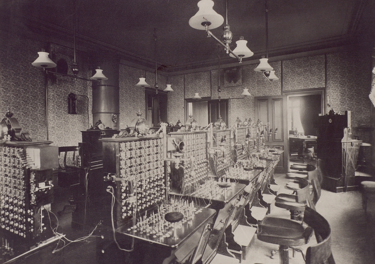Stockholm Oxtorget Allmänna första telefonstation, 1883.