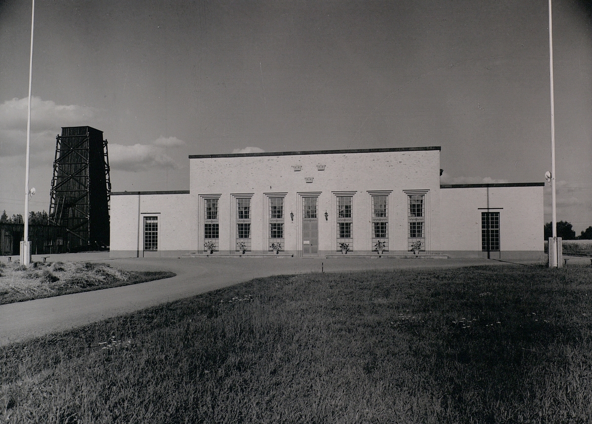 Motala 1935. År 1934 utbyggdes stationen från förutvarande 30 kW till 150 kW antenneffekt, vilket krävde ökat lokalutrymme .