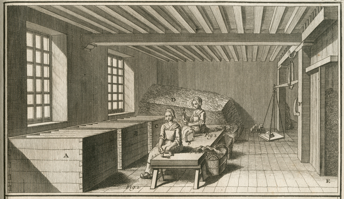 Fragmentering av pappersvaror. Bild ur Recueil de planches sur les scielces et les arts. TOM IV, Pl. I. Bis.