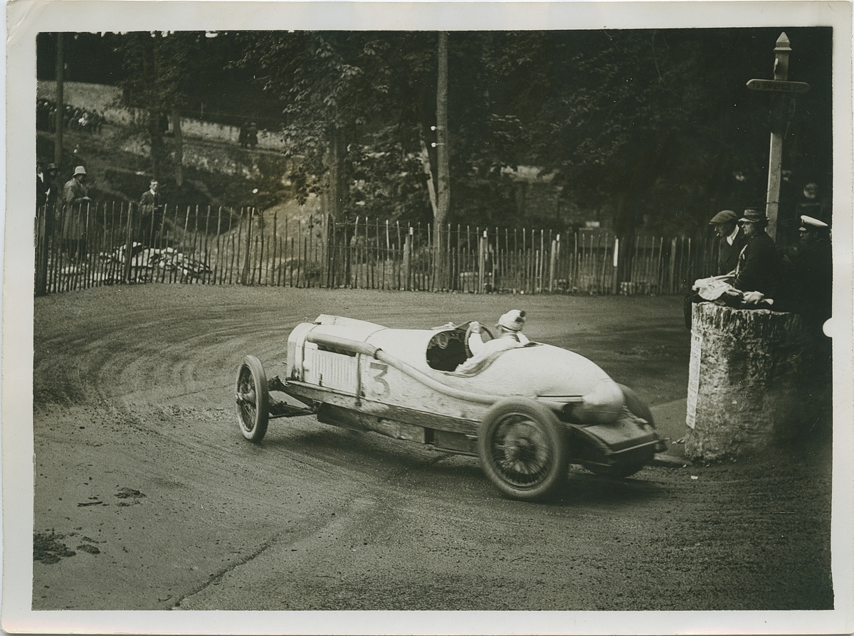 Manx Motor Road Races 1922. Frank Charles Clement i en Bentley vid Governor's Bridge.