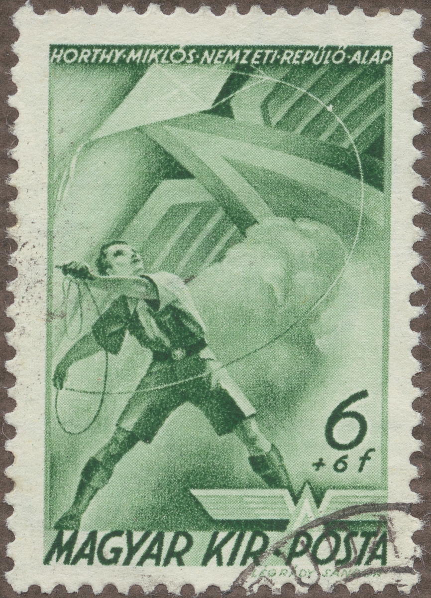 Frimärke från Ungern, 1940. Motiv av Scout med flygdrake -Till förmån för Miklos Horthys Nationella Luftfarts Fond-
