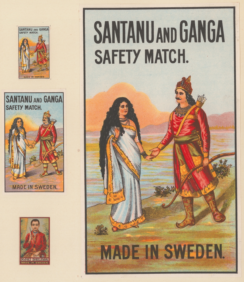 Etiketter för tändsticksaskar, från Svenskt Industri- och Handelsmuseum.