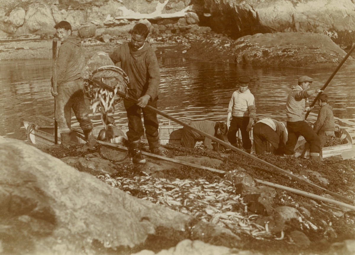 Fotografi från expedition till Grönland. Motiv av fiskare som återvänder med sin fångst.