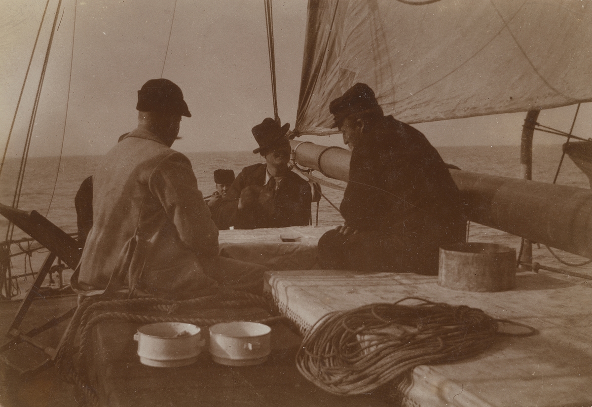 Fotografi från första svenska Antarktisexpeditionen 1901-1904. Motiv av expeditionsdeltagare ombord på fartyg.