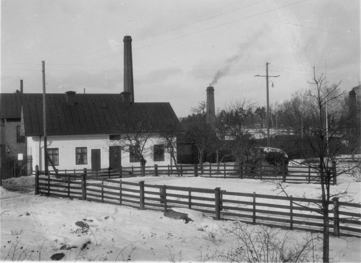 Häfla Bruk, Östergötland. Verkstäderna vid före detta Skärfors. Den vita byggnaden fungerade vid fotograferingstillfället som brukskontor.