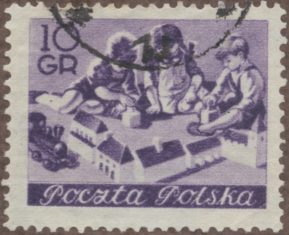 Frimärke från Polen, 1954. Motiv av Polska barn med leksaksbyggnader