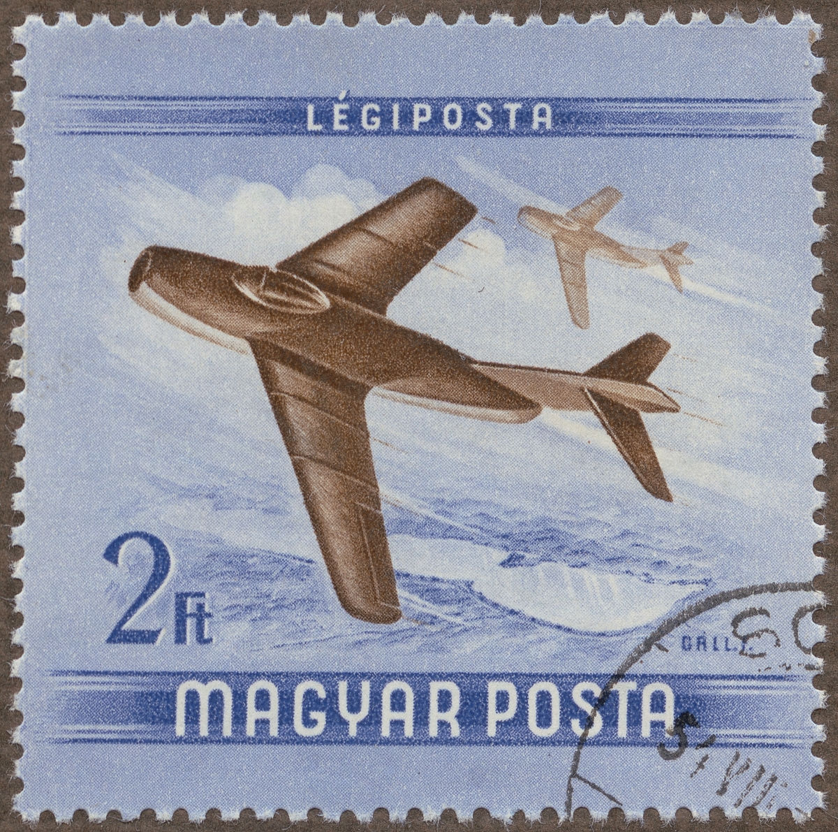Frimärke från Ungern, 1954. Motiv av Flygande vinge Reaplan Flygets Dag