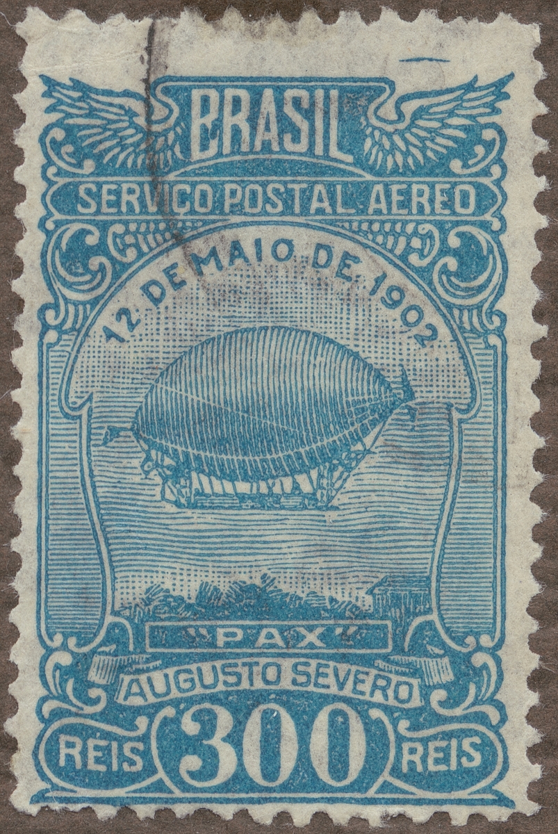 Frimärke från Brasilien, 1929. Motiv av Brasilianaren Augusto de Severos styrbara luftballong "Pax". -Färd 12 maj 1902.-