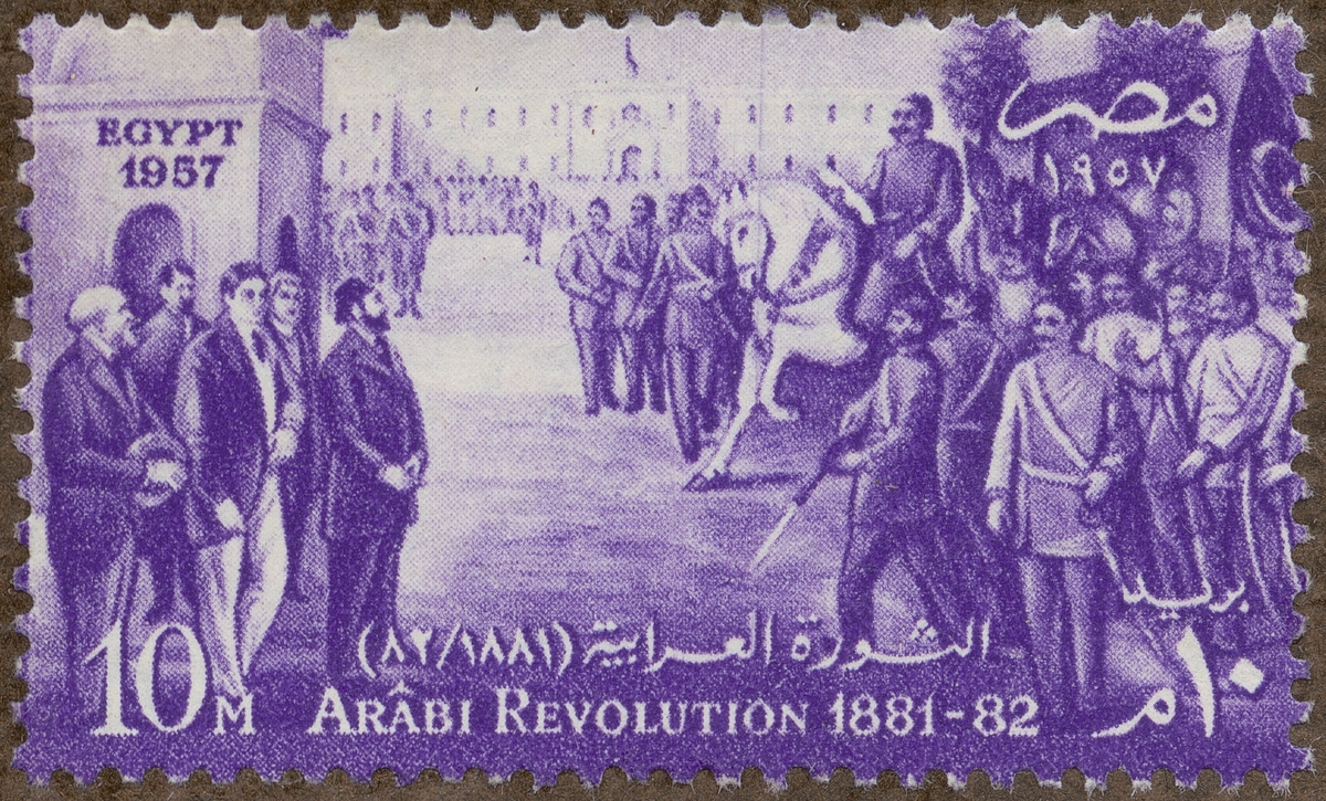 Frimärke från Egypten, 1957. Motiv av Arabi-Pasha Revolutionen: 1881-1882. 76-årsminne av Arabi-Pasha Revolutionen 1881-1957.