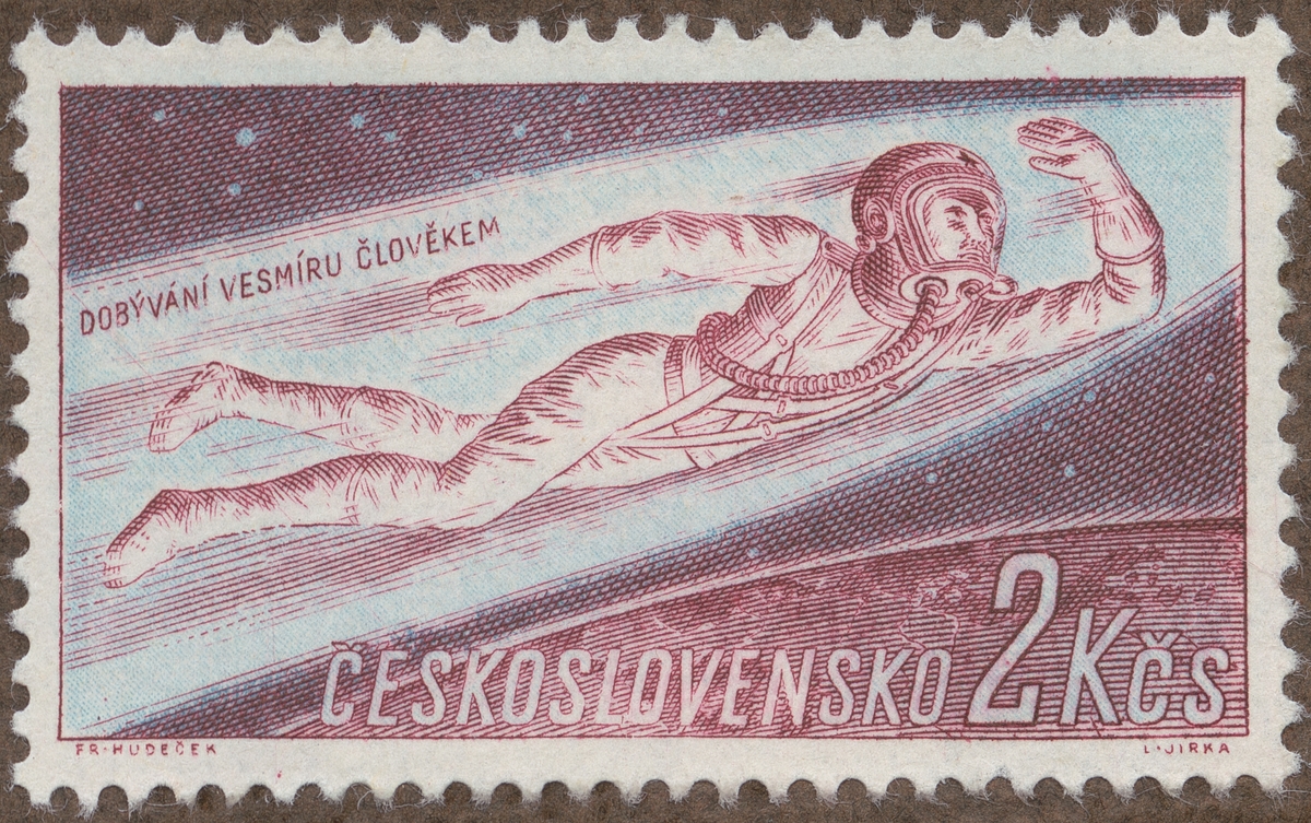 Frimärke från Tjeckoslovakiet, 1961. Motiv av Astronauten viktlös i rymden "-Astronaut Serie-"