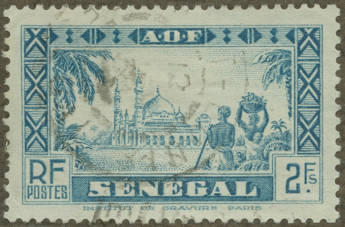 Frimärke från Senegal, 1935. Motiv av moské i Diourbel.