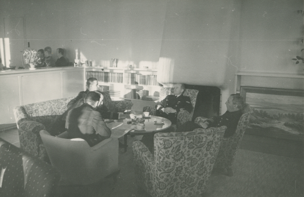 Diverse bilder från Fred Goldbergs samling. Motiv av fyra män som sitter i fåtöljer inomhus.