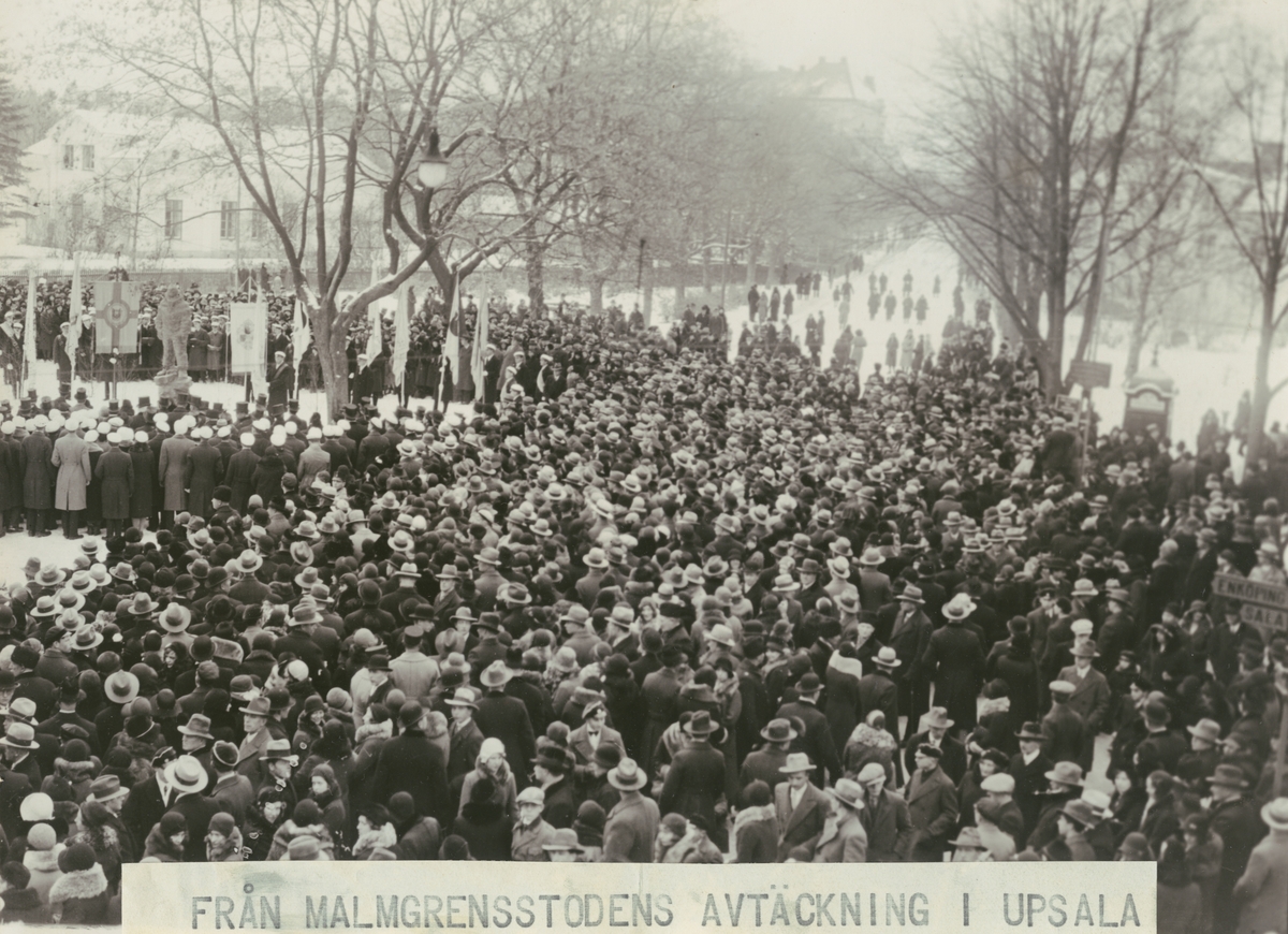 Fotografi från svenska undsättningsexpeditionen 1928. Motiv från avtäckningen av Finn Malmgren-statyn i Uppsla.