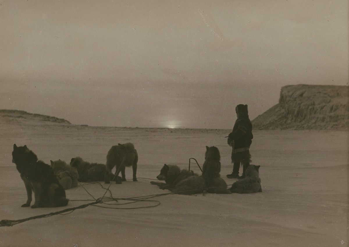 Diverse bilder från Fred Goldbergs samling. Motiv av person och hundspann i snölandskap.